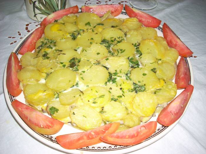 Questo piatto l'ho postato nei secondi ma, potrebbe benissimo essere un piatto unico. Tortino di alici e patate Ingredienti gr 500 di alici gr 700 di patate alcuni rametti di prezzemolo 1 spicchio di aglio un pizzico di timo 4 cucchiai di pecorino grattuggiato 2 uova alcuni cucchiai di latte o panna sale fino q.b. olio extra verg oliva q.b. Esecuzione Lavare le patate e metterle a cuocere in acqua fredda salata. Farle cuocere per 15/ 20 ninuti fino a quando toccandole con i rebbi di una forchetta cederanno. Sbucciarle e tagliarle a fettine, lavare le alici, eviscerarle e togliere la spina centrale. Lavare il prezzemolo ed il timo tritarle assieme agli spicchi di aglio. prendere una pirofila, ungerla con un filo di olio e farvi uno strato di fettine di patate Sulle patate fare uno strato di alici su queste smettervi un pò di trito aromatico e salare Cospargere con il pecorino Ricoprire con fettine di patate. battere le uova con il latte o la panna, unire un pò di trito di erbe aromatiche, salare. Versare sul tortino. Mettere in forno a 170° per 15 minuti o nel microonde max pot per 7 minuti